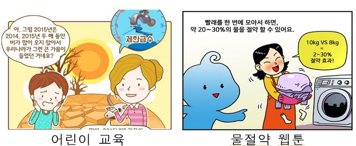 가뭄 발생 시 물차, 지하수, 소방시설 등 주변의 비상용수 공급시설을 연계해 즉각적인 대응이 가능토록 하는 '가뭄 119'시스템과 지역별 산불위험, 생활·공업·농업 가뭄 현황을 한번에 보여주는 '우리동네 가뭄지수'를 새롭게 제공한다. 이 밖에 초등학생도 쉽게 이해할 수 있도록 가뭄 및 물절약 관련 교육 웹툰과 생활 가뭄 달력을 실었고, 온라인 상에서 가뭄교육체험이 가능하도록 가상현실(VR) 교육장을 마련했다.