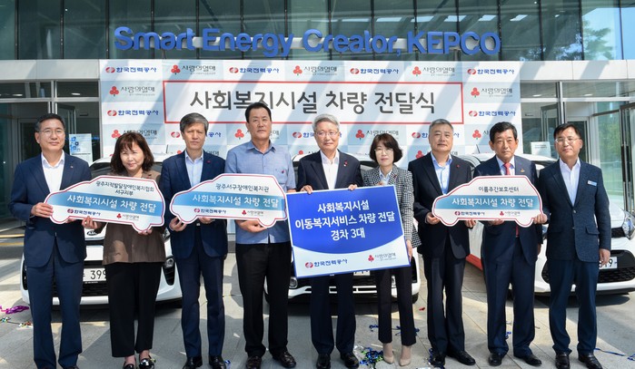 [환경데일리 최인배 기자]한국전력(대표이사 사장 김종갑)은 9월 18일 전남 나주 본사에서 광주 서구장애인복지관 등 3개 복지기관에 추석 명절을 맞아 경차를 지원했다. 이 날 행사는 몸이 불편해 대중교통 이용이 쉽지 않은 분들에게 최소한의 이동권과 교통편의를 제공하기 위해서 마련됐다.