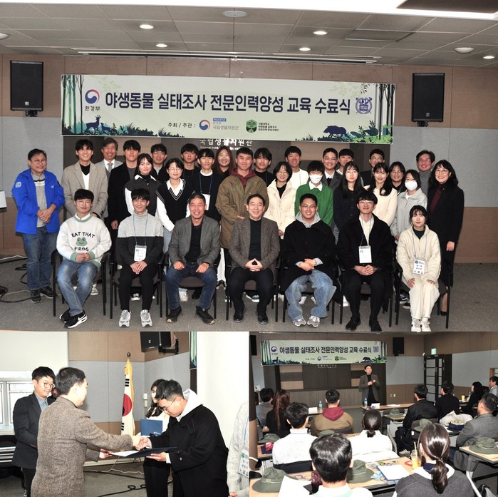 [환경데일리 김영민 기자]국내는 야생동물 전문가가 턱 없이 부족한 상황이다. 이를 해소하기 위해 환경부 소속 국립생물자원관(관장 서민환)과 서울대 야생동물실태조사 전문인력양성사업단(야생동물인력양성사업단)은 2023년 제2기 '야생동물 실태조사 전문인력 양성교육'의 기본 및 심화과정을 마치고 25일 수료식을 거행했다.