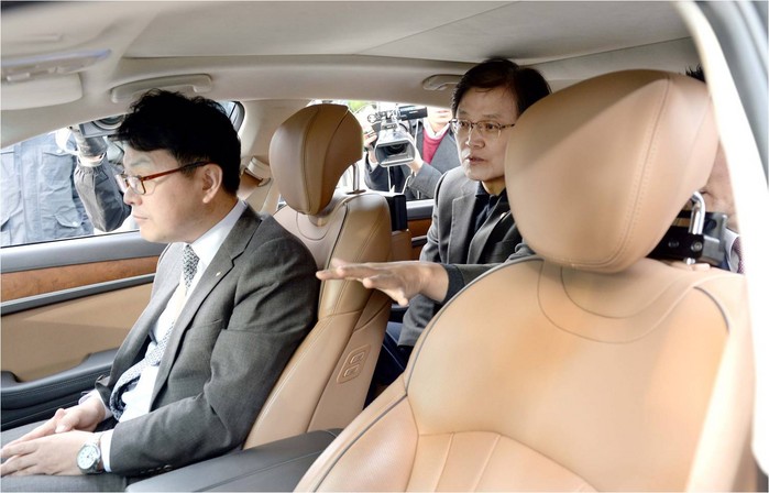 최양희 장관은 현대차 기술 지원 인력들과 함께 현대차의 자율주행 선행기술이 탑재된 제네시스에 직접 탑승, 현대차의 자율주행 기술력을 직접 체험했다.