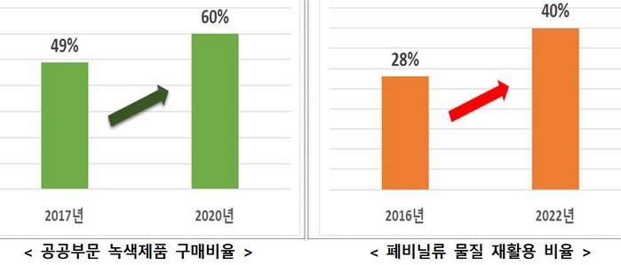 국내 재활용 제품의 수요확대를 위해 공공조달 지침·규격, 가점 등 관련 규정정비를 우선 추진하고, 공공부문의 녹색제품 구매비율도 60% 수준으로 끌어올릴 계획이다.