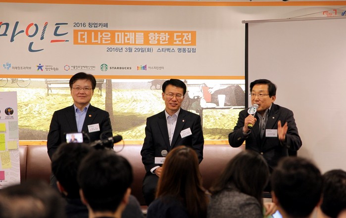 스타벅스는 2015년 11월 미래부, 청년위와 함께 창업카페 프로그램 운영을 위한 업무 협약을 맺고, 자유로운 공간인 스타벅스 매장에서 스타트업 유명인사의 창업 별별 이야기 멘토링 강연을 개최해 청년 창업가들의 커뮤니티 활성화를 지원해 오고 있다.