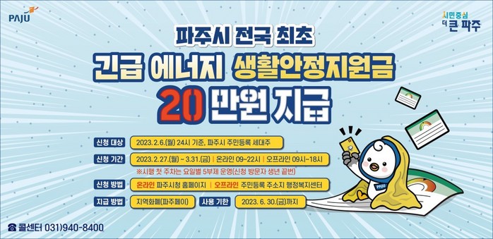 시민들 모두에게 조건 없이 공평하게 일종의 '재난 지원금'을 지급해 일상생활에 반드시 필요한 필수 생계비를 대체함으로써 여유금액을 에너지 비용으로 부담하도록 했다. 총 20만 3112세대에 406억 원의 적지 않은 예산이 소요됐지만 지원금을 파주페이로 지급하기로 한 결정은 지역경제 활성화에도 긍정적 촉매제로 작용하며 '상생 도약'의 연쇄효과로 이어졌다.