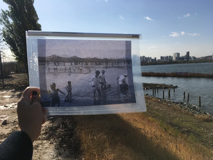 ▲한강철교를 배경으로 60년대 흑백사진을 겹쳐보았다 |