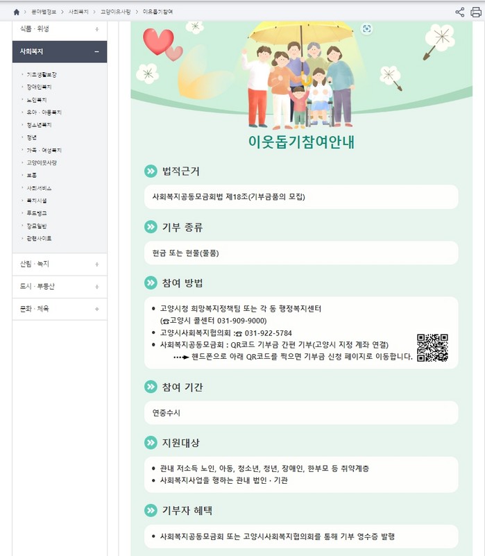 [환경데일리 문종민 기자]고양시는 고양시 기부 나눔 문화 확산을 위해 사회복지공동모금회 경기북부지회와 함께 고양시청 홈페이지에 큐알코드 간편기부시스템을 개설했다.