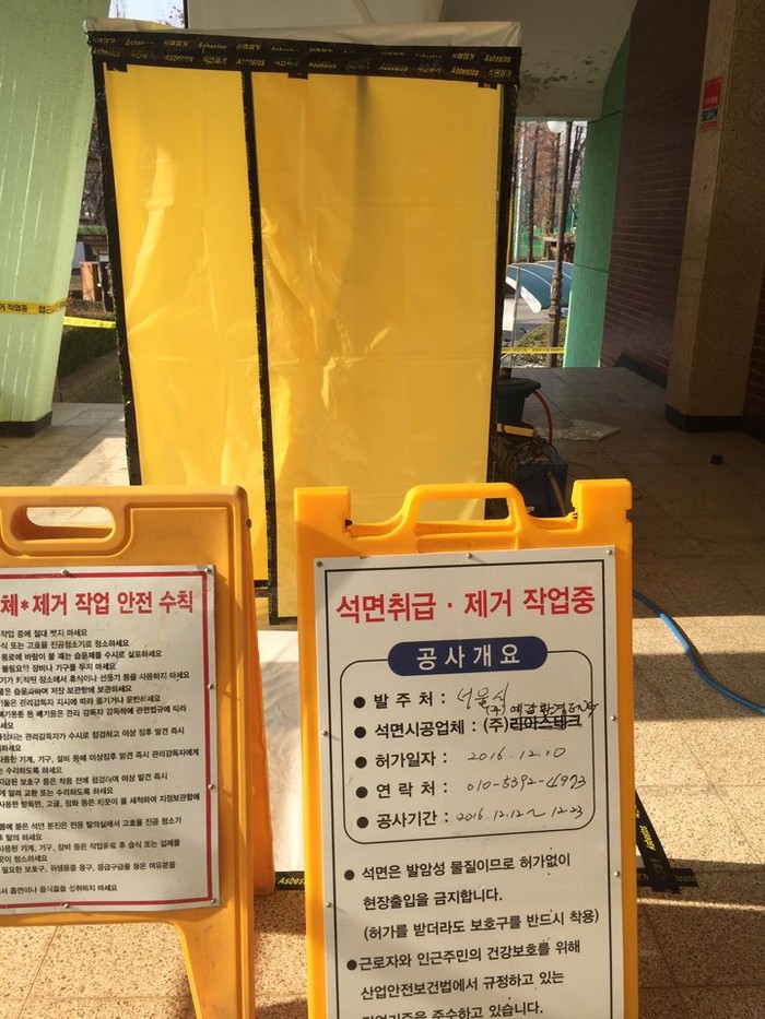 또한 석면해체작업 감리인에 대한 처벌 기준 도입, 감리원 전문교육 강화, 석면 잔재물 조사 의무화 등 석면안전관리 강화를 위한 제도개선을 추진하고 있다.