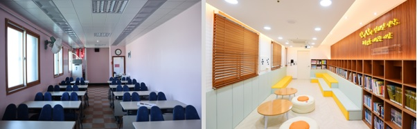 리모델링 지원 경우 인테리어 기반으로 벽, 바닥, 천장 공사 등을 진행하며 기관의 특성에 맞는 디자인으로 환경을 개선할 수 있도록 공간 리모델링 전반을 지원한다.
