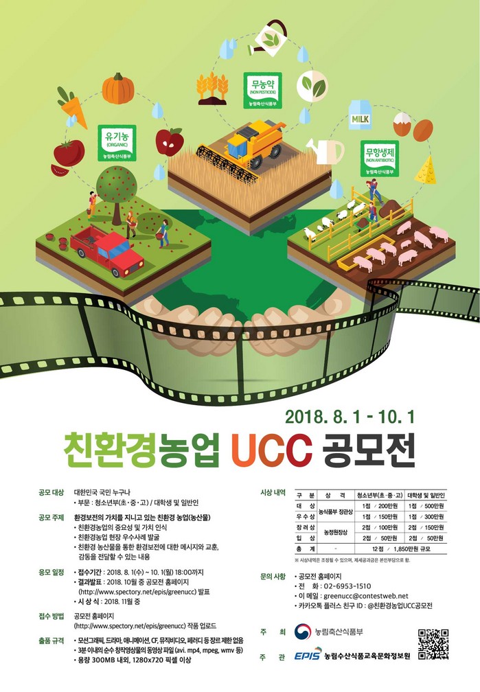 이를 위해 농림수산식품교육문화정보원(원장 박철수)이 전 국민을 대상으로 '친환경농업 UCC 공모전'을 10월 1일까지 모집한다고 밝혔다.