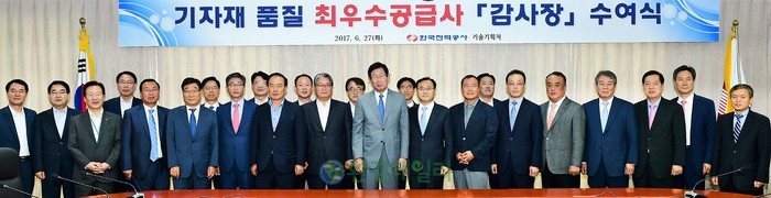 [환경데일리 최인배 기자]한국전력은 27일 본사에서 2017년 전력기자재 평가 결과 최고품질의 전력기자재를 공급한 15개 공급사에 감사장을 수여했다.