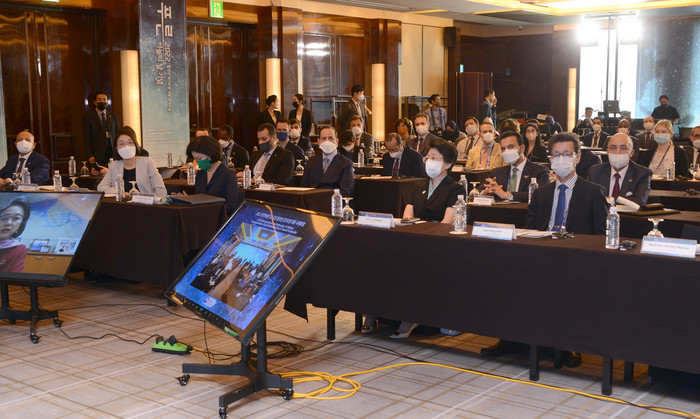 8일 웨스틴 조선호텔에서 20여개 국 주한 외국대사관 관계자들이 참석한 가운데 일본, 태국 등 현지와 온라인으로 동시에 연결해 진행했다.