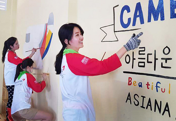 아시아나항공 임직원 봉사단 17명은 국제개발협력 NGO ‘비소나눔마을’과 함께 이달 24일부터 26일까지 캄보디아 프놈펜에 위치한 축봐 중고등학교에서 '아름다운 교실' 봉사활동을 실시했다.