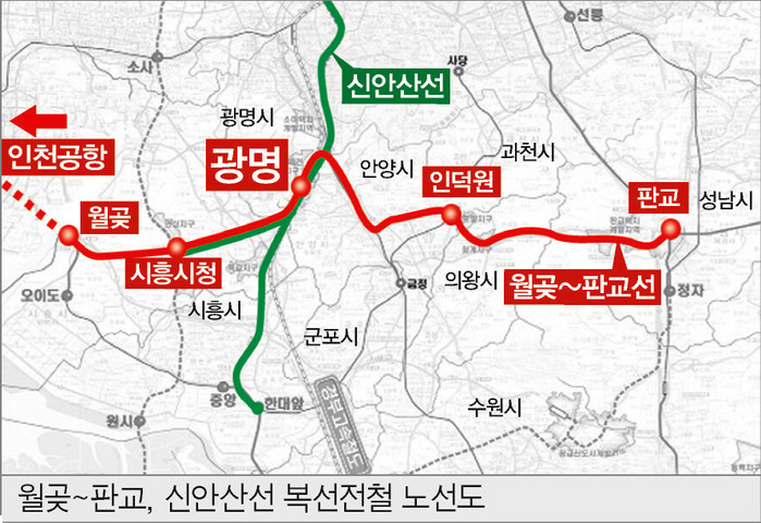 [환경데일리 이은수 기자] 광명시(시장 광명시)는 KTX광명역을 통과하는 신안산선과 월곶~판교선 복선전철 건설 사업이 확정되고, 정부가 내년 예산에 신안산선 500억 원, 월곶∼판교선 65억 원의 사업비가 확보함에 따라 두 노선이 조기에 건설될 수 있도록 적극 지원하기로 했다.