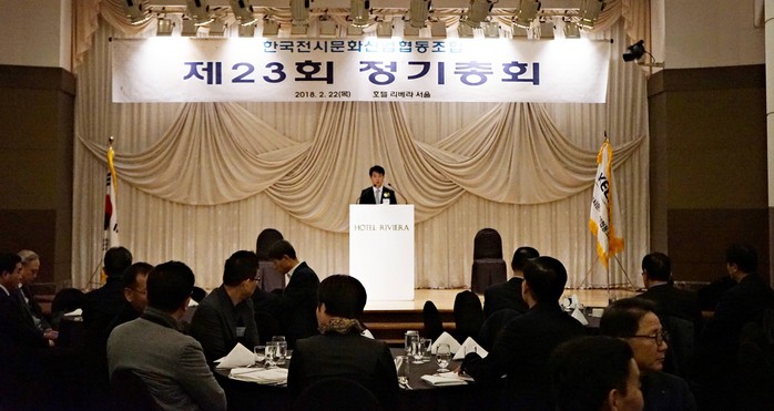 | ▲ 한국전시문화산업협동조합이 22일 호텔리베라에서 2018년도 제23회 정기총회 모습 |