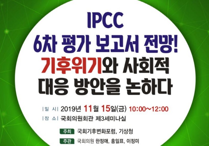 [환경데일리 김영민 기자]범국민적인 기후변화 대응의 입법·정책 거버넌스를 추구하는 국회기후변화포럼은 15일 의원회관(제3세미나실)에서 기상청과 공동주최로 'IPCC 6차보고서 전망, 기후위기와 사회적 대응방안을 논하다!'라는 주제로 포럼을 개최한다.