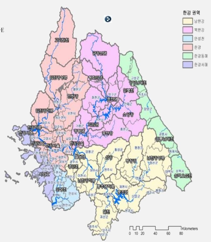 한강권역은 총 5개로, 남한강, 북한강, 안성천, 한강, 한강동해, 한강서해로 나눠졌다.