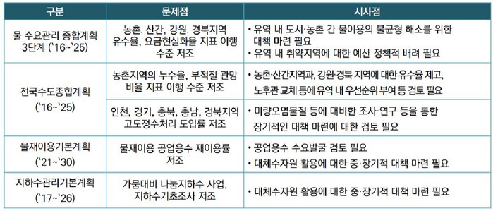 가뭄 재해와 관련, 지자체가 지원부실 등으로, 유역물관리 종합계획안에 들어와 있지만, 중요한 부분중 물절약 방안도 빠져 아쉽다고 했다.
