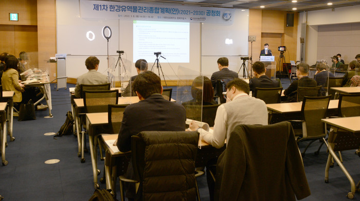 한강유역물관리위원회(공동위원장 한정애 환경부 장관.김형수 인하대 교수)는 8일 대한상공회의소에서 관계 전문가 등 대상으로 '한강유역물관리종합계획' 수립을 위한 첫 번째로 열린 온오프라인 공청회가 개최했다.