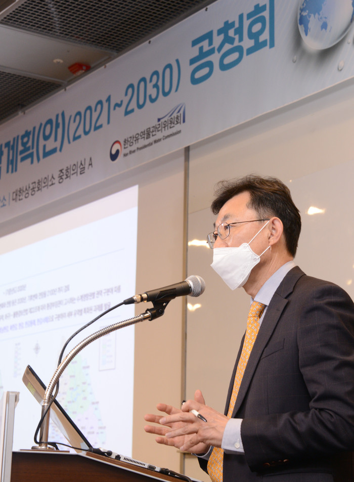 이 자리에서 김형수 한강유역물관리위원장은 인사말을 통해 "유역물관리 종합계획의 필요성은 중복성 해소, 햐향식 물관리 체계와 상향식 접근을 조화롭게 유역별 주민들이 참여해 이롭게 연결하는데 있다."며 "물관리 체계의 완성된 형태를 한강유역에서 선도적인 방식과 방법을 찾겠다."고 설명했다.
