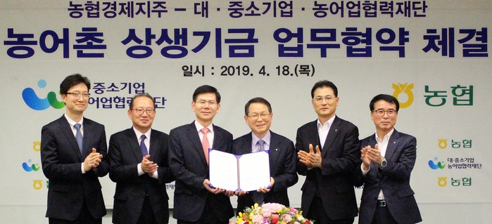 [환경데일리 최진경 기자]농협 경제지주와 대·중소기업·농어업협력재단(사무총장 김순철)은 18일 농협중앙회 본관에서 농어촌 상생기금 활성화 및 농업인 소득증대를 위한 업무협약(MOU)을 체결했다.