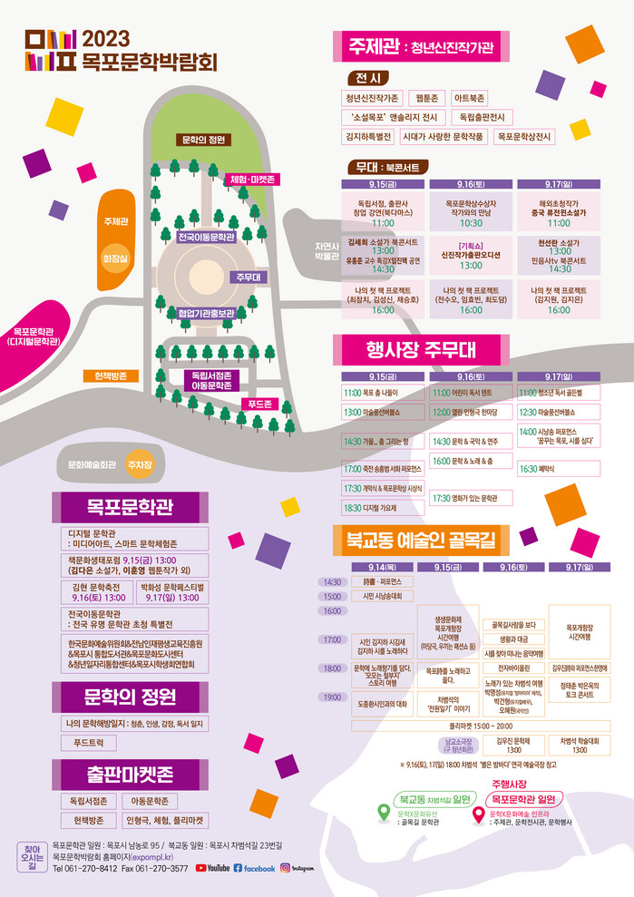 목포문학관 일대에서 오는 15일 개막식을 시작으로 17일까지 전시, 행사, 공연 등 120개의 다양한 프로그램을 만날 수 있다.