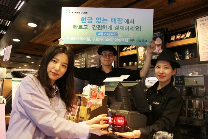 [환경데일리 김영민 기자]㈜스타벅스커피 코리아(대표이사 이석구)가 판교H스퀘어점, 삼성역점, 구로에이스점 등 총 3개 매장을 '현금 없는 매장' 시범 사업장으로, 사전 홍보 기간을 거쳐 4월23일부터 현금 거래 없는 매장 시범 운영에 들어간다.