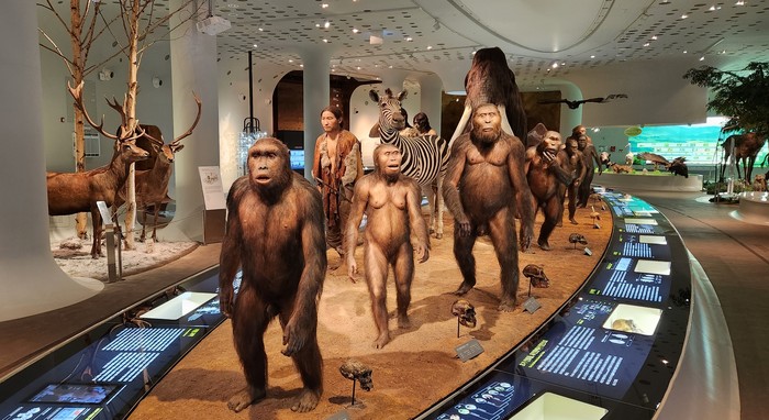 상설전시실에 들어서면 중앙의 메인 전시물에 시선을 빼앗긴다. 인류의 진화 과정을 보여주는 정교한 모형이 행진하듯 늘어섰다. 초기 인류 화석 중 하나인 사헬란트로푸스차덴시스(별칭 투마이)부터 학창 시절에 달달 외운 오스트랄로피테쿠스, 호모에렉투스, 호모사피엔스 등이다. 세계적인 복원 예술가 엘리자베스 데인스의 손을 거친 전시물은 머리카락 한 올, 주름 하나까지 섬세해 금방이라도 살아 움직일 듯하다.