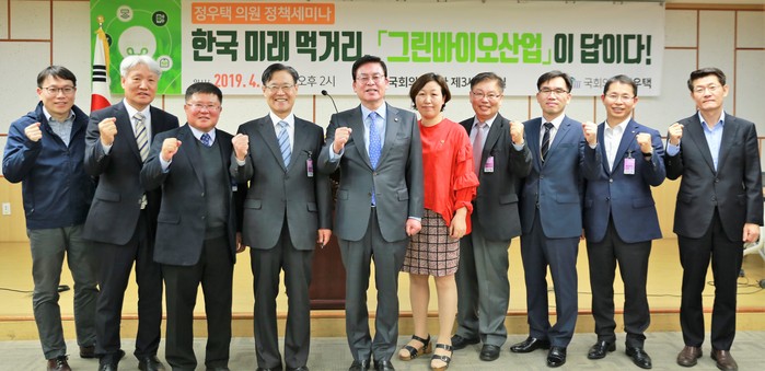 정우택 의원(자유한국당 청주·상당)은 4월 29일 오후 국회의원회관 제3세미나실에서 '한국 미래 먹거리, 그린바이오산업이 답이다'라는 주제로 정책 세미나를 개최했다. 이번 세미나는 한국 미래 먹거리를 책임질 핵심 기술인 그린바이오 경쟁력 강화를 위해 국내 산업 현황을 점검하고, 국내 GMO 연구자들의 경험을 토대로 관련 법의 규제 개선 방안을 논의하기 위해 마련됐다.
