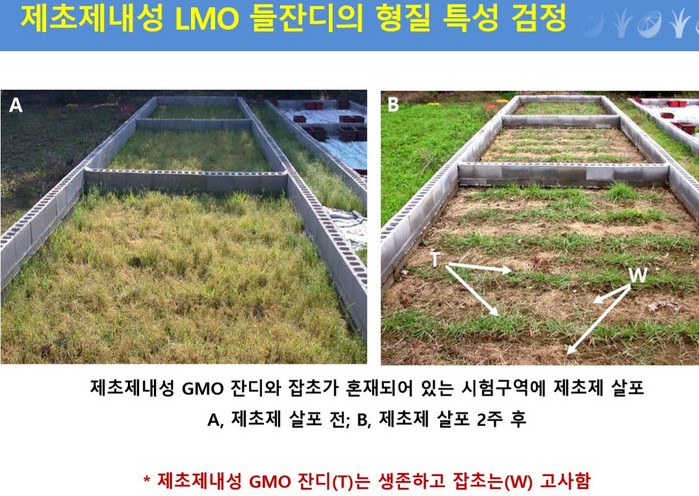 국내는 또 제초제저항성 잔디 10여년간 심사 중에 있다. 일반 국민들에게 잘 알려지지 않는 우리 토종 잔디가 크리스마스 장식 나무로 쓰는 구상나무처럼 1800년대 말 부터 미국으로 건너가 개량돼 왔고, 현재 중남부 전역의 골프장, 공원 등에서 널리 이용되고 있다.