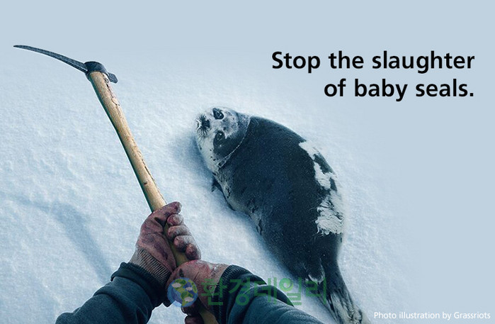▲어린 물개를 더 이상 죽이지 말라는 캠페인, 물개의 눈빛이 공포 그 자체다. |
