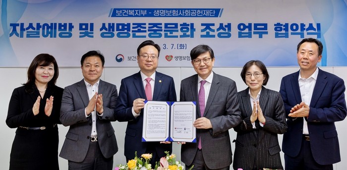 [환경데일리 고용철 기자]생명보험사회공헌재단(이사장 이장우)은 7일 생명보험재단 대회의실에서 보건복지부와 '자살예방 및 생명존중문화 조성 민관협력체계 구축 업무협약'을 맺었다. 협약식은 복지부 조규홍 장관과 재단 이장우 이사장, 조태현 상임이사 등이 참석한 가운데 진행됐다.
