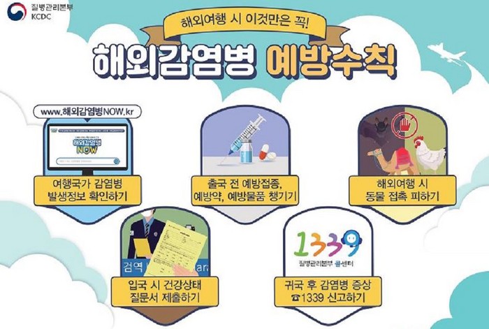 감염병 예방 수칙은 ▲외출 후나 식사 전 손을 30초 이상 비누로 씻기 ▲음식은 완전히 익혀먹고 안전한 물 섭취하기 ▲모기 물리지 않기 ▲여행지에서 조류, 낙타, 파충류 등 동물접촉 하지 않기 ▲의료기관 방문 시 마스크 착용하기 등이다.