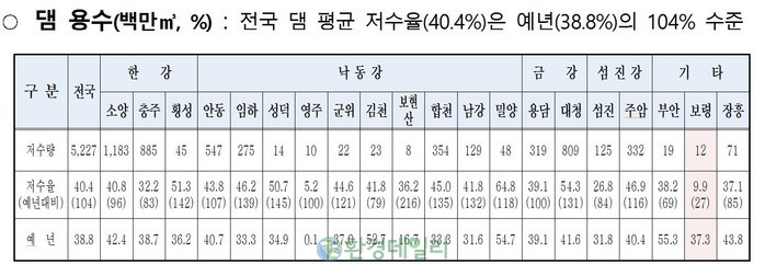 한국수자원공사(K-water)가 관리해온 보령댐은 4일 기준 저수율이 9.9%, 도내 898개 저수지 평균 저수율도 40.4%에 머물고 있다고 밝혔다.