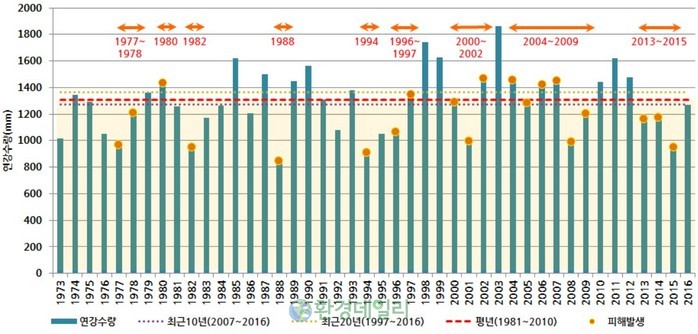 ▲우리나라 연도별 강수량 |