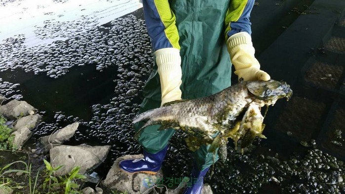 ▲경기도 파주 공릉천 산란기 물고기들 새끼 낳으러 왔다가 떼죽음으로 내볼고 있다. 극심한 가뭄과 기온상승, 주변 환경오염물질 폐수 방류가 직간접적인 원인으로 꼽고 있다. |