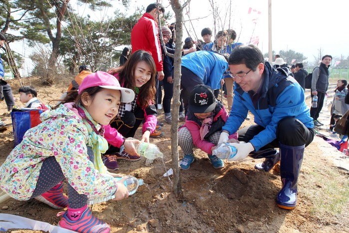 가족들과 행사에 참여하기 위해 아침부터 도시락을 준비해 왔다는 소하동 정광영씨 가족은 "6살, 9살 아이들과 함께 나무를 심어볼 기회가 없었는데 제대로 된 우리 가족의 나무를 심어보고 성장해 나가는 모습을 보면 우리 아이들의 성장해 나가는 모습과 같을 것 같아 흐뭇할 것 같다." 고 말했다.