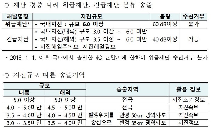 규모 6.0 이상 큰지진 수신 거부 설정도 강제 전송