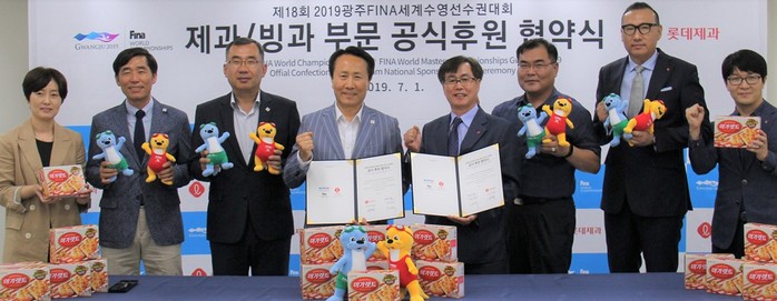 롯데제과와 '2019 광주세계수영선수권대회' 조직위원회는 1일 광주 조직위 회의실에서 대회의 공식 후원 협약을 체결했다.
