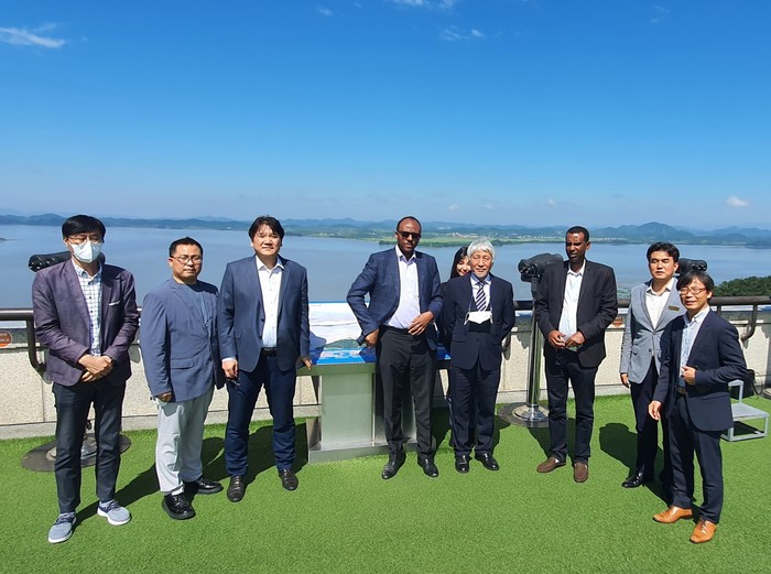 ▲지난해 글로벌 ESG포럼에 에디오피아 수자원에너지부 Itafa 장관, 오사카대 나카즈미 교수, 오투엔비(O2&B) 반승현 대표 등 일행이 맑은 물 공급에 획기적인 기술력을 아프리카 대륙에 공급할 계획을 밝힌 바 있다. 오투앤비는 2023 워터코리아 국제 행사에도 참석해 주목을 받았다. 사진은 지난해 오두산 통일전망대를 찾아 한반도 평화적인 생태축 보존을 위한 논의했다. |