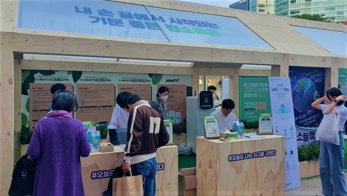 올해 기후변화주간 참여자 확대 및 탄소중립 인식 확산을 위해 21일 코엑스 밀레니엄광장에 마련된 홍보부스에서는 '내 손끝에서 시작되는 기분 좋은 탄소중립'주제로 탄소중립을 생활속에서 실천하는 체험과 경품응모가 가능하다.