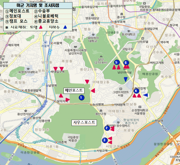 [환경데일리 한영익 기자]서울시가 용산 미군기지 6개소(메인포스트, 수송부, 정보대, 니블로베럭, 8군 휴양소, 캠프모스)의 외부경계지에서 실시한 토양지하수 오염결과를 공개했다.