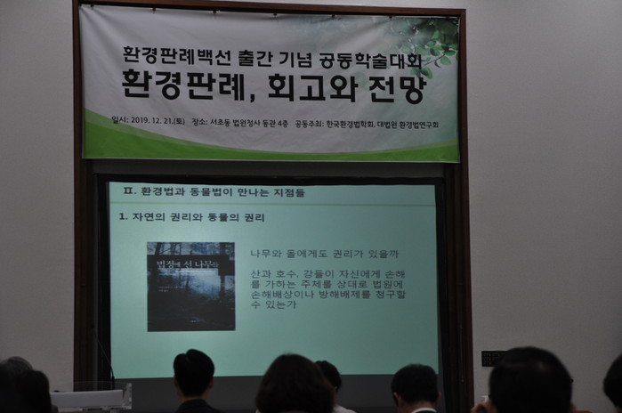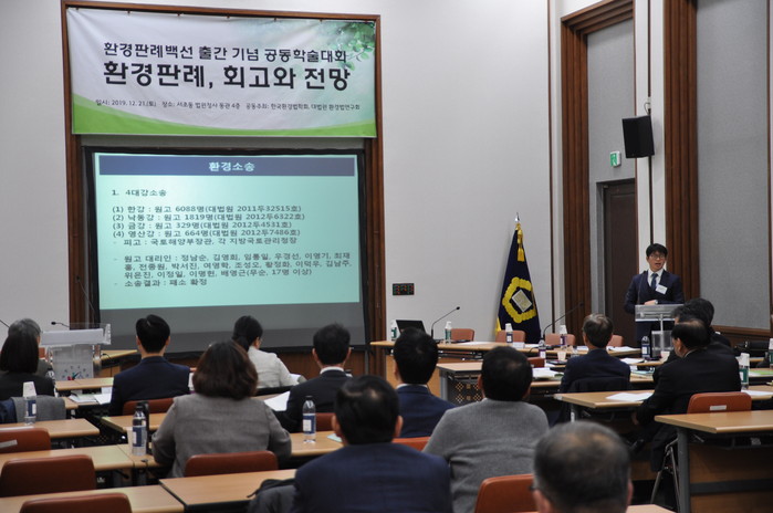 21일 서울고등법원 회의실에서 열린 한국환경법학회, 대법원 환경법연구회 공동주최로 연 환경판례백선 출간 학술대회 토론장은 진보적인 젊은 법관들 입김으로 애사롭지 않게 감쌌다.
