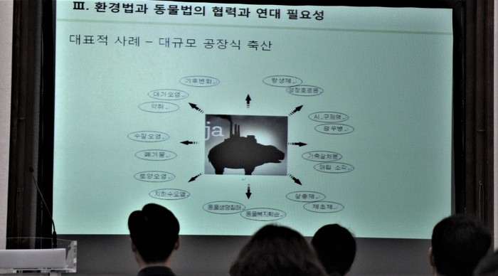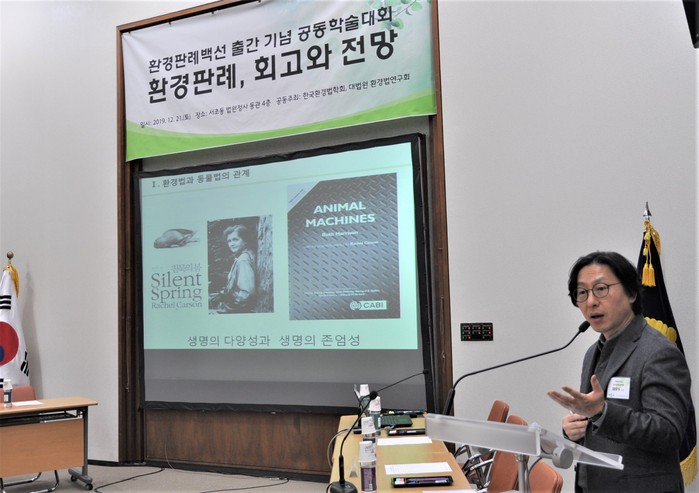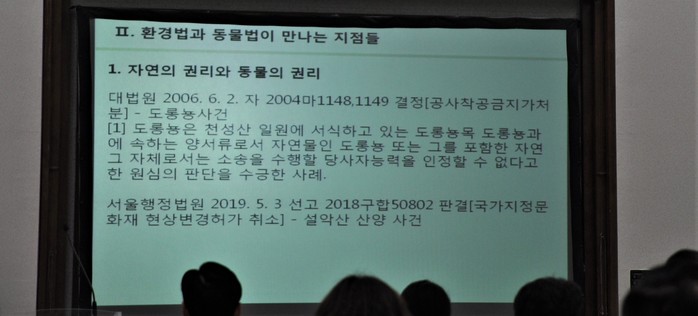그는 "환경법이 권리화되고 진행형으로 재산권에서, 생명신체에서, 분리돼서 강화될 수 있을까 (사회적 합의가 안돼)의문이 든다."라면서 "환경권에서 접근하는 부분에서 오히려 생명을 위협하는 법이 휠씬 낮다."고 어필했다.