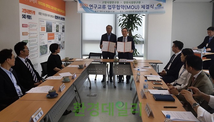 [환경데일리 이수진 기자]고양시정연구원(원장 양영식)과 창원시정연구원(원장 박양호)이 지난달 30일, 상호 연구교류 업무협력 강화를 위한 양해각서(MOU)를 체결했다.