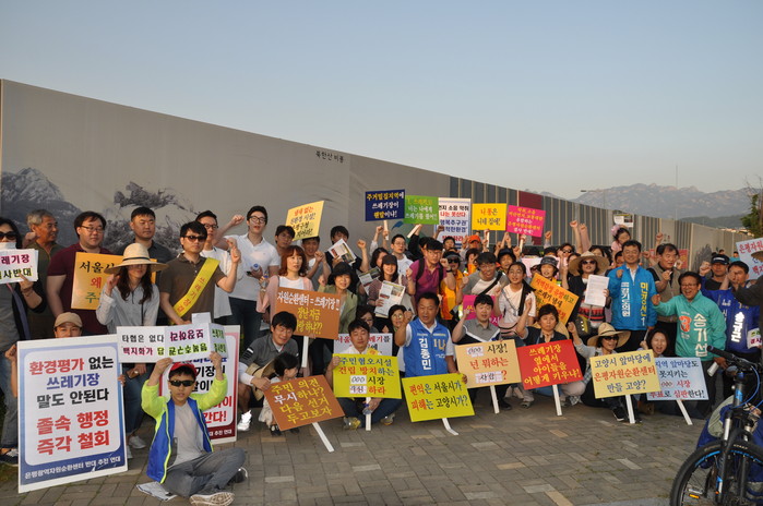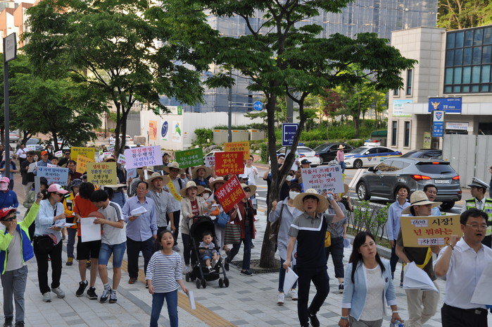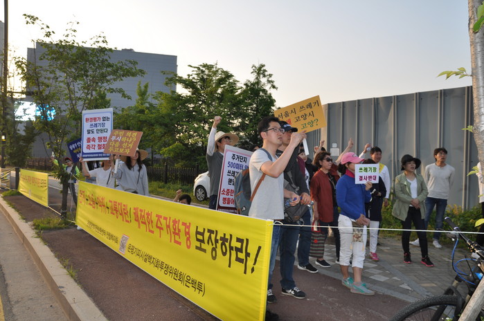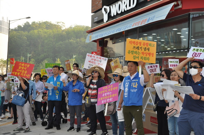 거리집회 참가 지역주민들은 쾌적한 주거공간 확보는 커녕 주거환경을 깨는 행정은 더 이상 용납할 수 없다며 건립 반대한다고 호소했다.