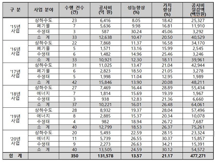 공단은 2011년부터 공공환경시설 설계 경제성 검토를 수행해왔고, 지난해까지 총 351건 약 4770억 원을 절감했다. 설계 경제성 검토 제안 모음집 및 수행 실적 등 관련 정보는 공단 대표 누리집(www.keco.or.kr)에 공개하고 있다.