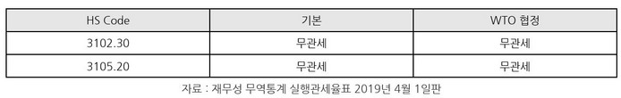 질소비료(초산 암모늄) 수입 점유율 한국 1위