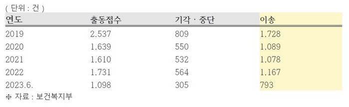 닥터헬기가 임신부를 태우고 이송한 평균 거리는 95km였다. 가장 긴 이송거리는 백령도에 위치한 인천의료원 백령병원에서 인천 길병원까지 무려 306km를 이동한 경우다. 이들 임신부는 대부분 '분만취약지'에 거주하거나 이송 당시 취약지에 머물렀다.