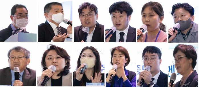 ▲(사진 왼쪽 시계방향으로) 박경찬 태안부군수, 이명준 본부장, 권봉오 교수, 김형기 교수, 박나영 선임연구원, 박창욱 대표, 심원준 박사, 서명지 대표, 오혜정 소장, 이은애 수석, 이종민 박사, 허정림 교수 |