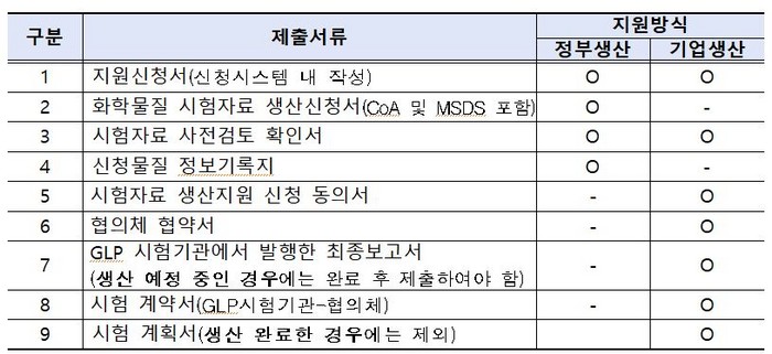 2021년 화학물질 등록 지원사업은 기업에게 필요한 시험자료를 정부가 직접 생산 제공해야 한다. 올해부터는 기업이 직접 생산한 경우까지 확대해 소요비용의 일부를 지원한다.