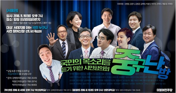현직 국회의원들 중 70년대생인 강병원, 강훈식, 김병관, 김해영, 박용진, 박주민, 이재정, 전재수, 제윤경 의원들이 청춘들에게 즐기는 토크 콘서트를 만들었다.
